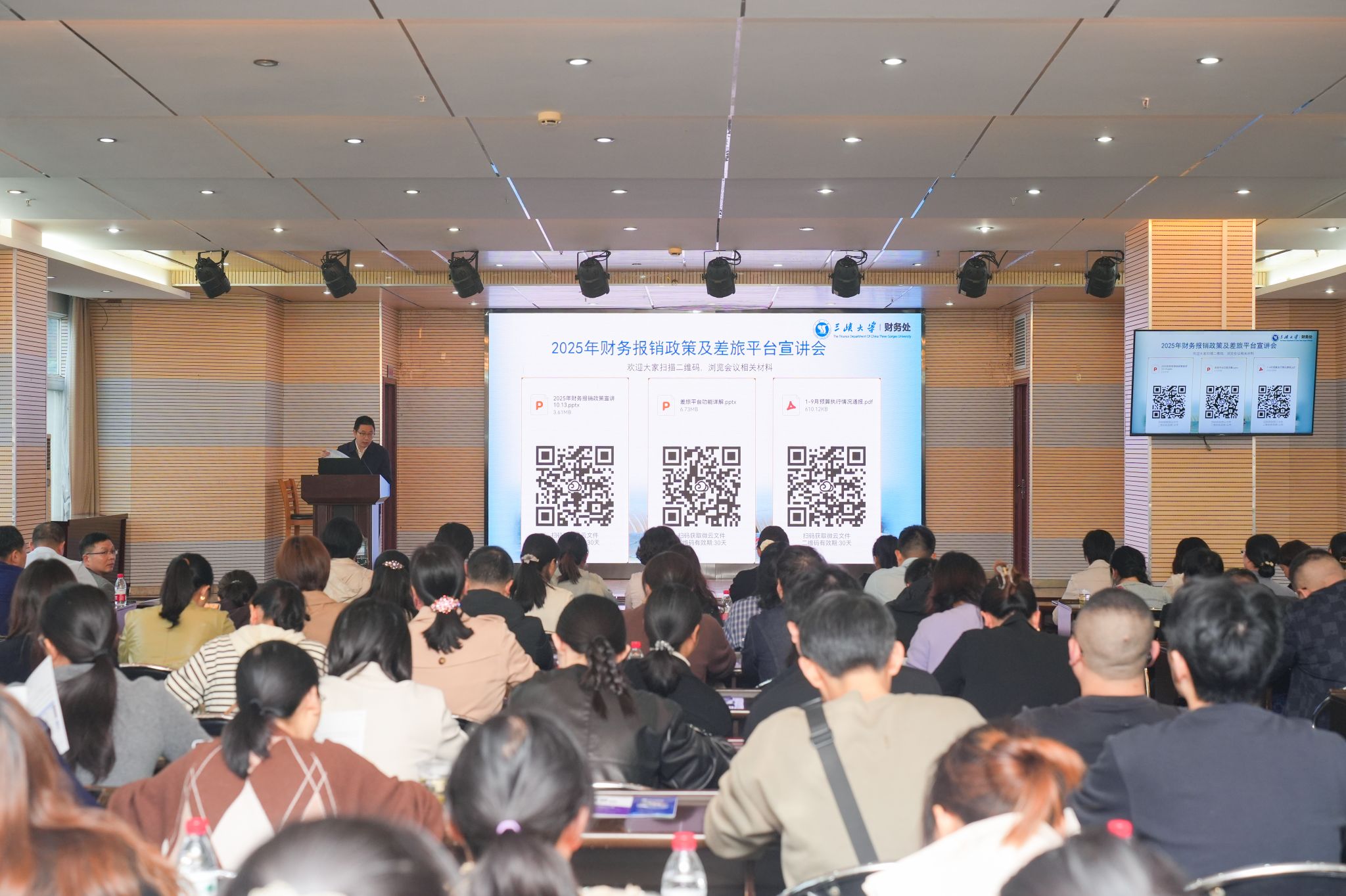 为进一步加强财经政策宣传,做好差旅平台上线试用,财务处于2025年10月14日下午在图书馆二楼屈原报告厅举办2025年财务报销政策及差旅平台宣讲。宣讲会由财务处处长郑浩昊主持,校属各单位办公室主任(综合科科长)及科研助理、单位报账人员、科研经费报账人员及其他有兴趣的教职工共计150余人参加了宣讲会。